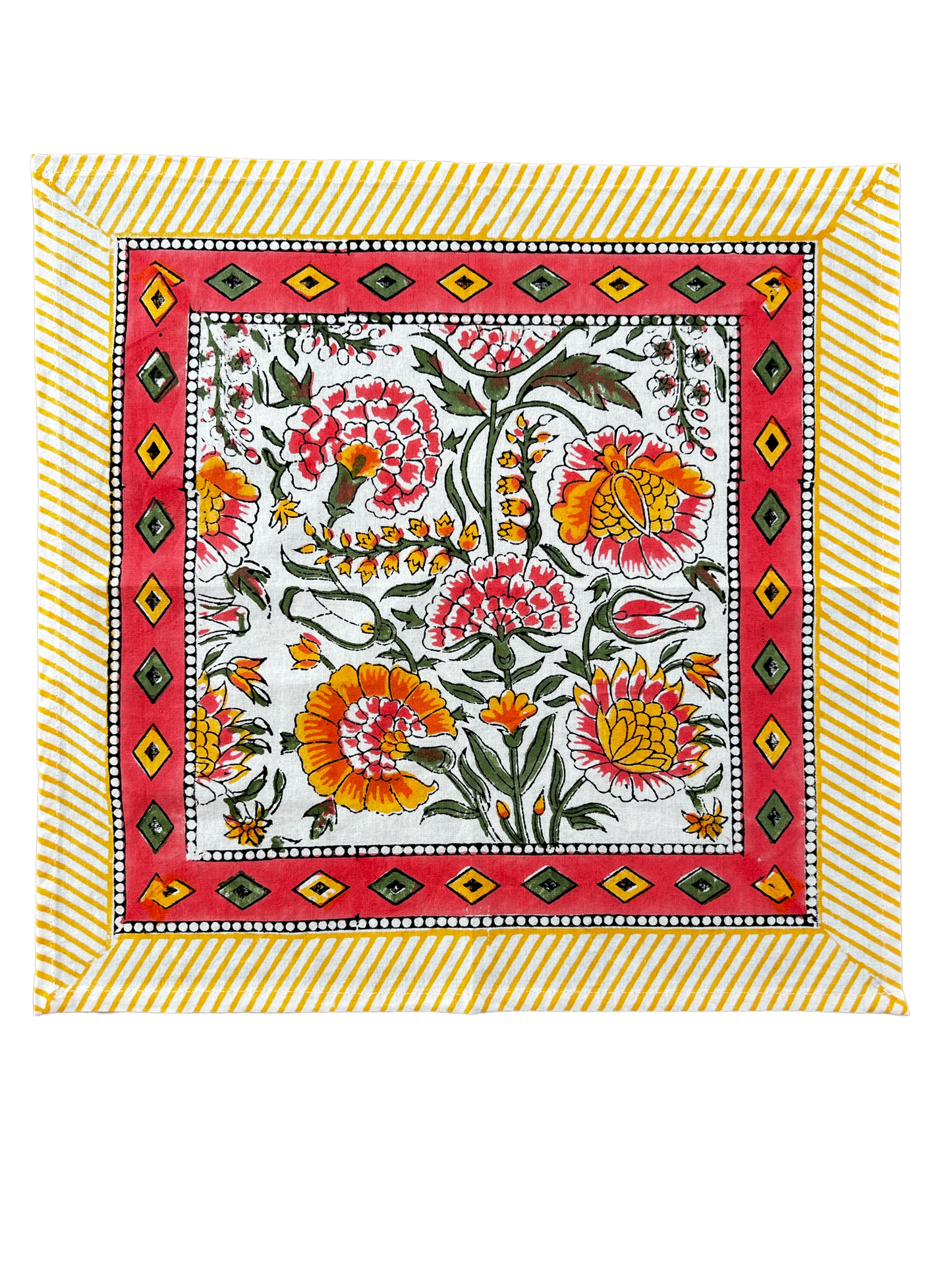 Lalaa Kanani napkins are 15" square and are made with regular weight Indian cotton fabric. They are sold as a set of 6 napkins.