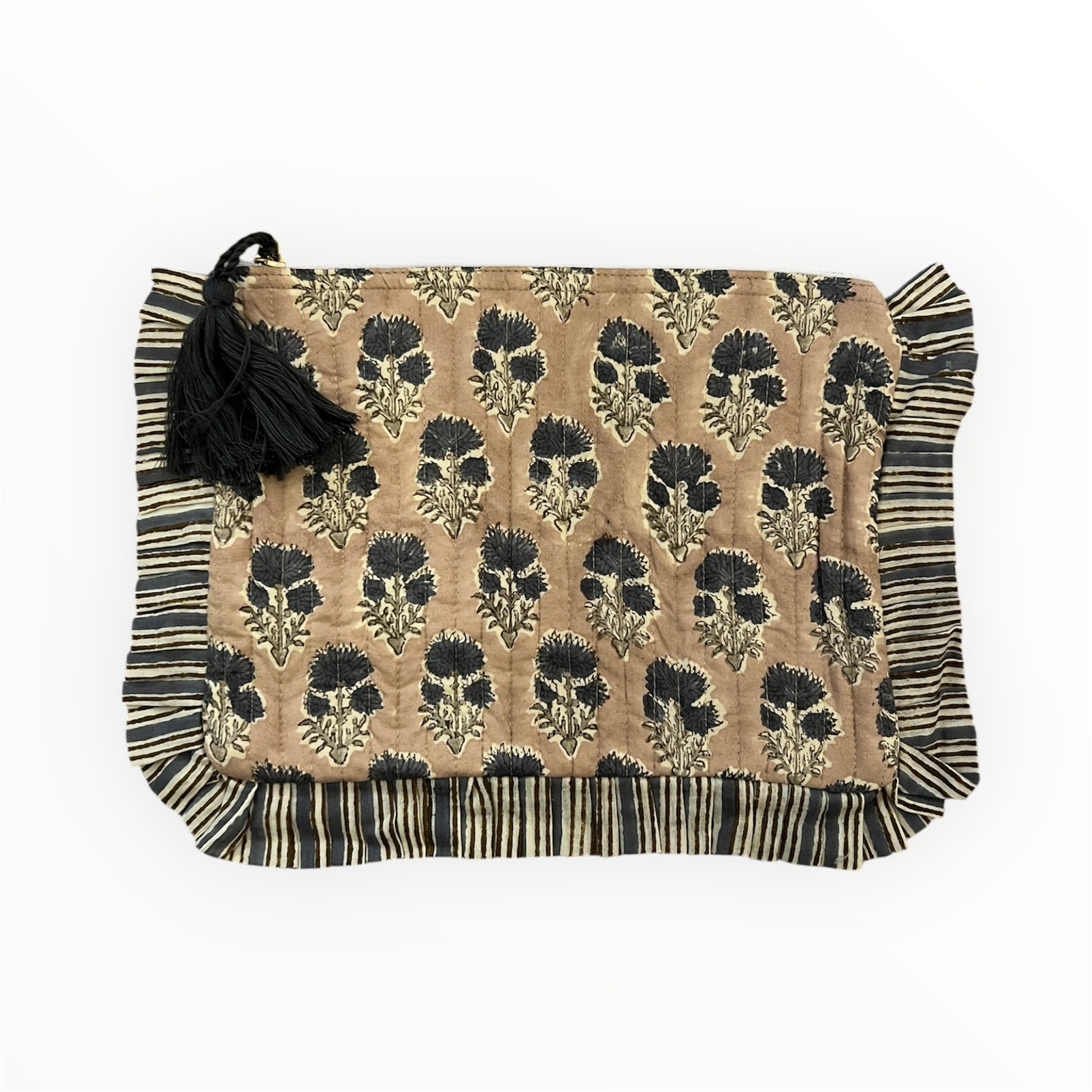 Frilly edged clutch, perfect for a fun night out. One interior pocket and decorative pull.