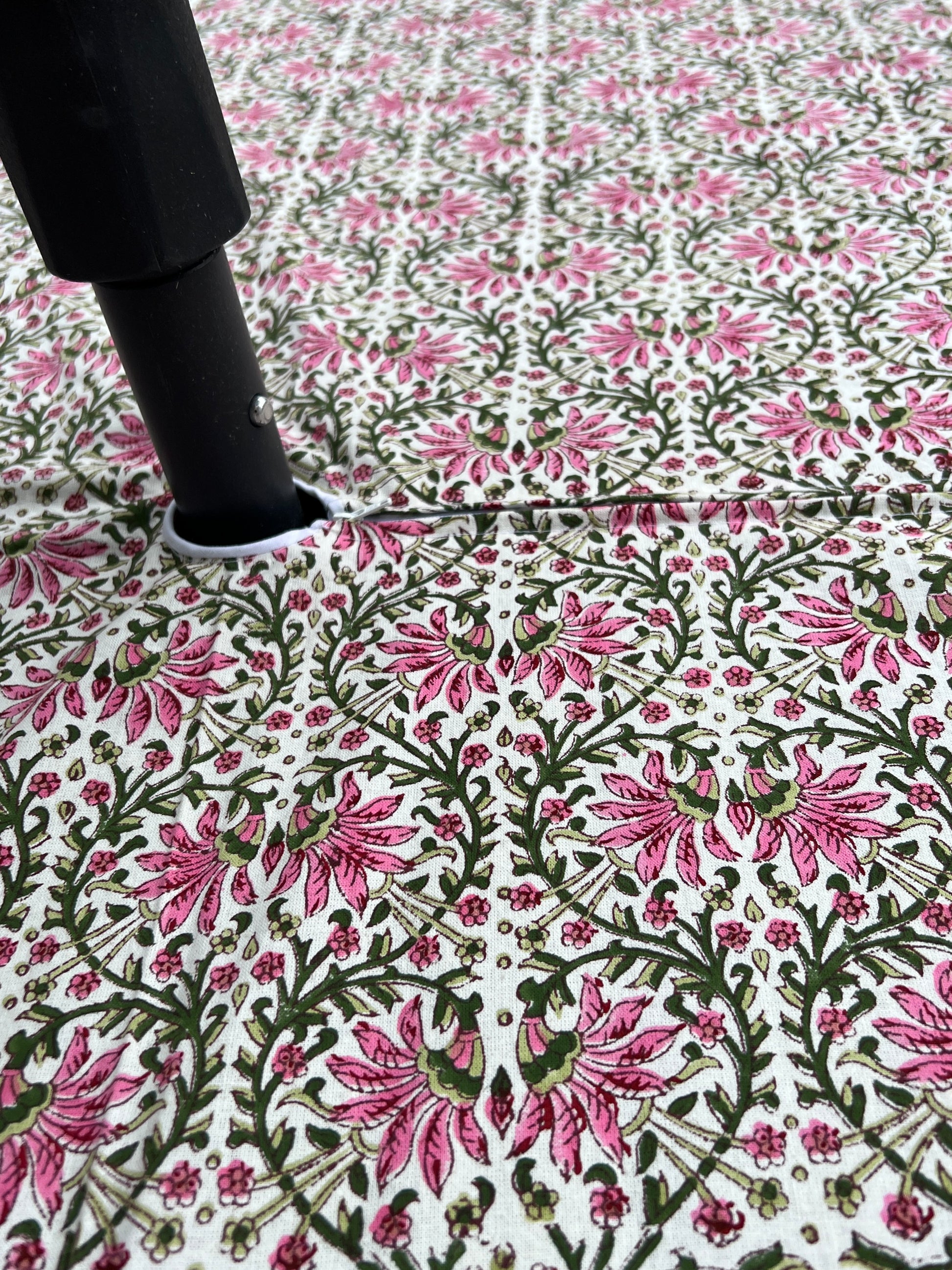 This zippered umbrella tablecloth is perfect for outdoor use in spring, summer, and fall. This wonderful outdoor tablecloth zips on and off easily around patio table umbrellas for easy meals outside with shade. The cotton material makes is machine washable and is great for BBQs, parties, summer gatherings, dinners with the family, and more.